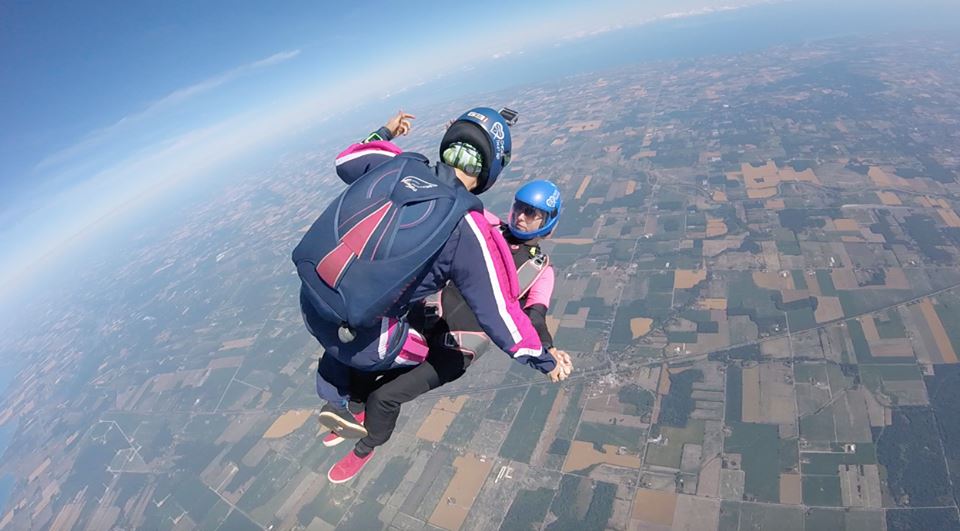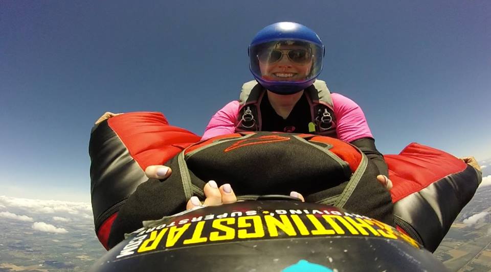 Hitting 100 jumps earlier this year and doing a wingsuit rodeo (where you sit on top of a wingsuiter) to celebrate